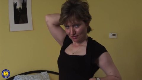 Solidly Built Mature Tes Caresses Her Pussy With Her Fingers And With A Thin Dildo